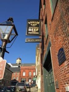 Move forward almost fifteen years from that first visit for me. The catalyst for this article is the addition of the words FIBER OPTIC CENTER to the recently renovated P. Kaller & Son Wholesale BEEF and Provisions sign. The sign still hangs outside of the building that has served as a whale oil storehouse, an ice-making company, a provisioning warehouse, an office for ship captains, the P. Kaller & Son meat-packing business and now Fiber Optic Center.